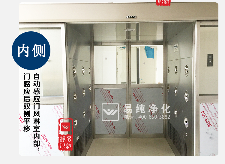 貨淋室門電子互鎖,可以兼起氣閘室的作用,防未被凈化的空氣進入潔凈室,達到有效的凈化效果,經高效過濾器過濾后的潔凈氣流由可旋轉噴嘴從各個方向噴射至物體表面,有效而迅速清除塵埃粒子,帶有塵埃粒子的空氣再由初、高效過濾器過濾后重新循環到風淋區域。